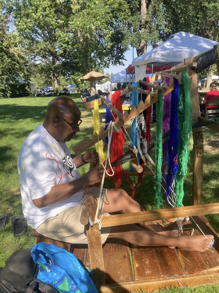 If we may have missed you at the Festival, please visit our website and join our mailing list to learn more about Kwasi’s work and see some of our Kente products. Kwasi will be coming back to Denver in September to do a Kente weaving workshop with the Colorado Arts League, teaching Kente weaving using the special hand looms that he created. Kwasi is also doing a workshop this weekend with the Sankofa bookstore community in Washington, DC. On Saturday, August 3, 2024 from 12 noon to 3 pm. Kwasi’s workshops are available for elementary, middle and high school students, as well as churches and community organizations. Anyone from 8 – 80 can learn to weave their own Kente creations with Kwasi’s course and online videos!