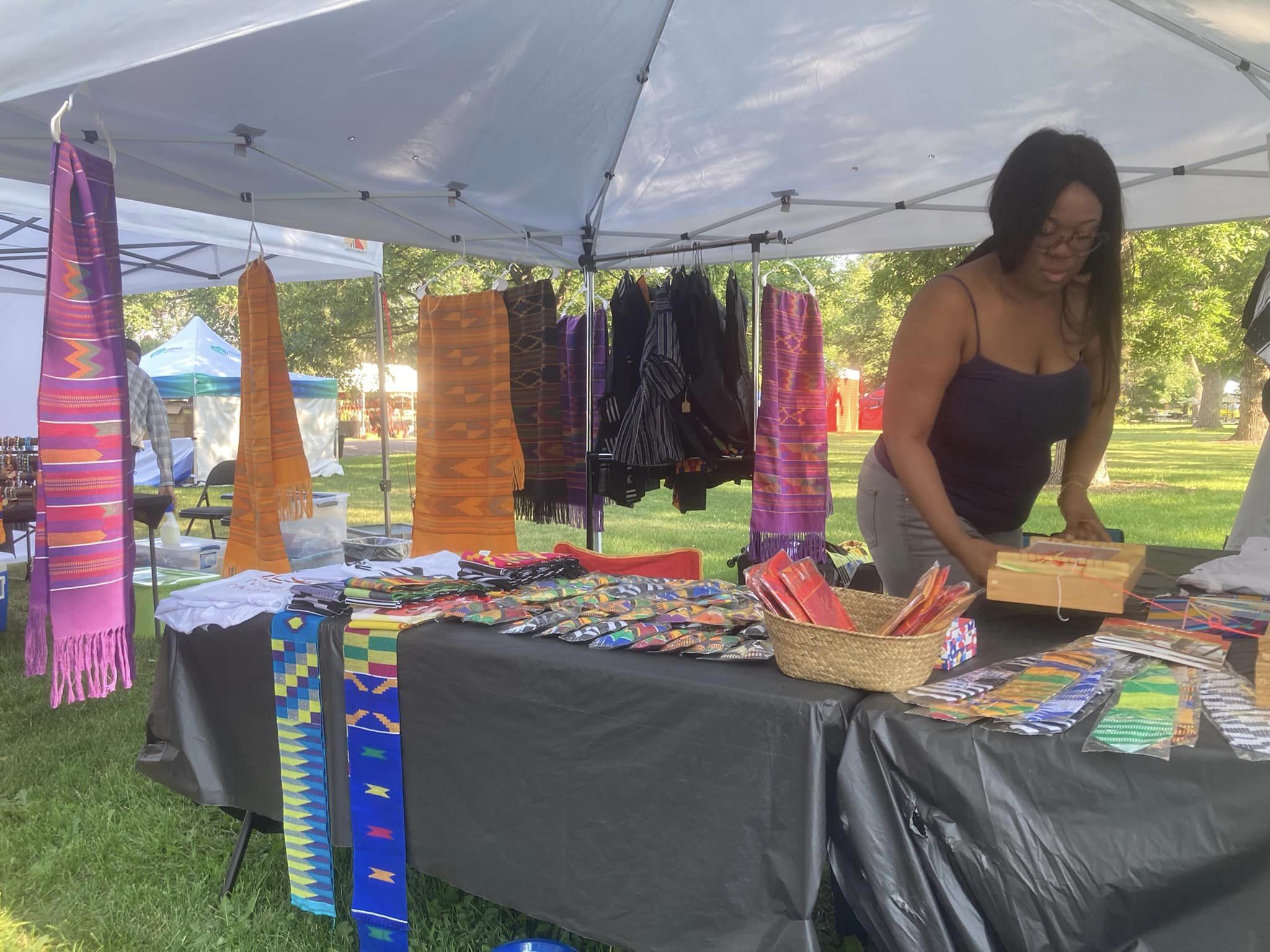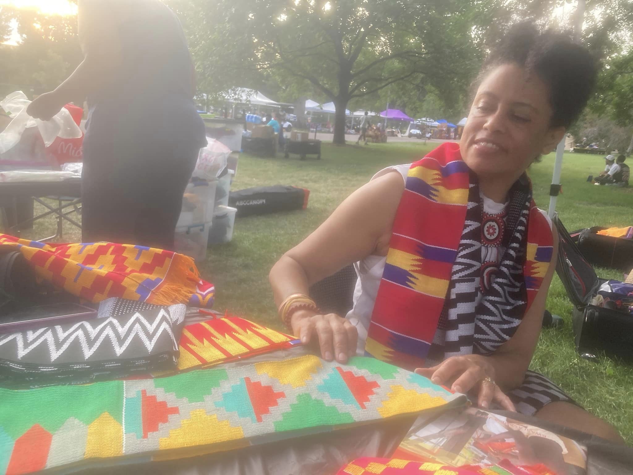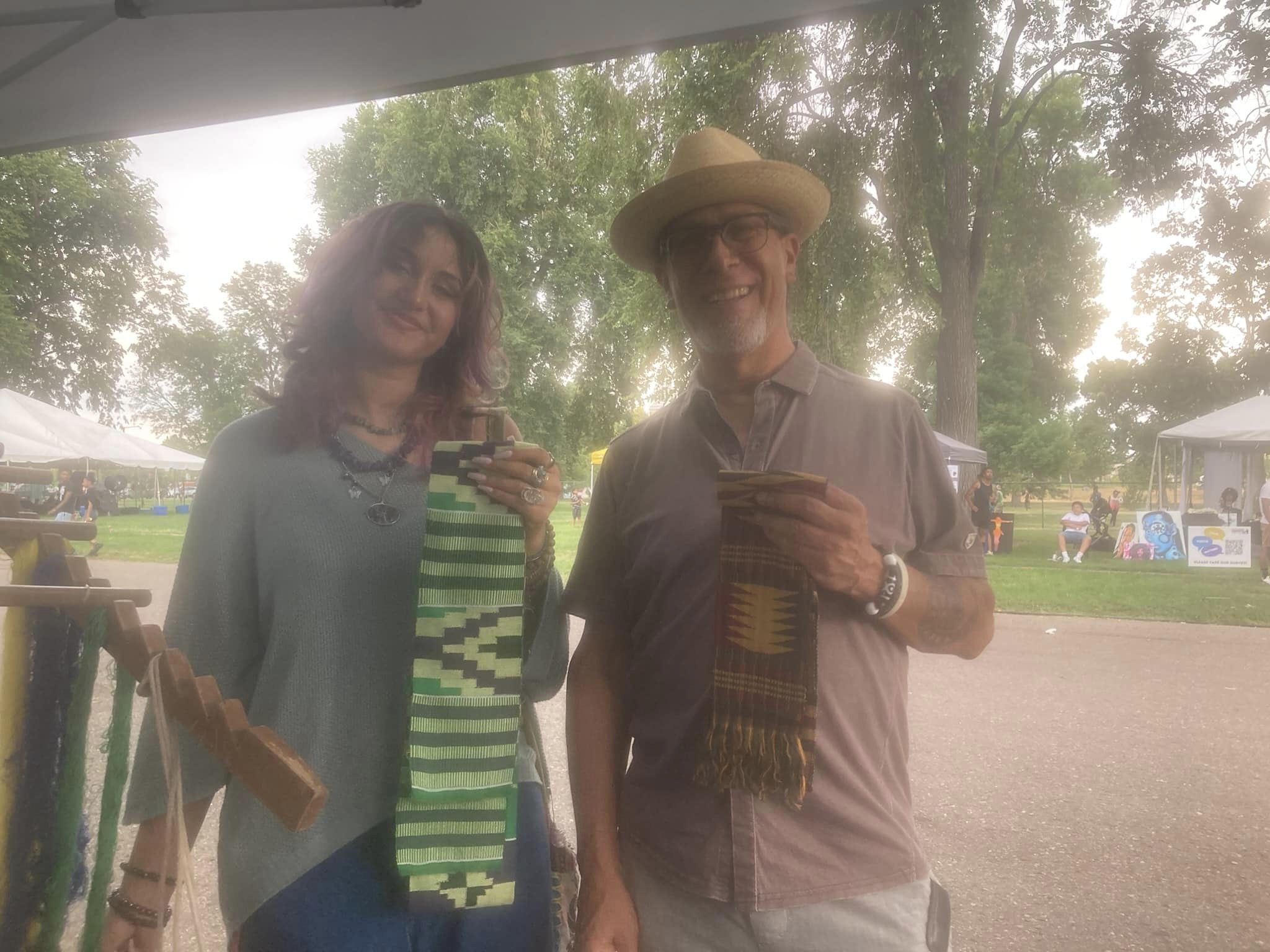 Once again, just like last summer – we had a great time at the Colorado Black Arts Festival!!! Kwasi Asare set up his traditional Kente loom, and people were excited to see how authentic, handwoven Kente cloth is made. Kwasi also brought his daughter Afua, from Ghana, and she helped run the booth. We had a lot of great conversations with wonderful people. It was HOT – 100 degree temperatures all 3 days! lol Despite the heat, people came out and there was a lot of joyful laughter and uplifting spiritual energy.