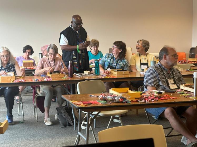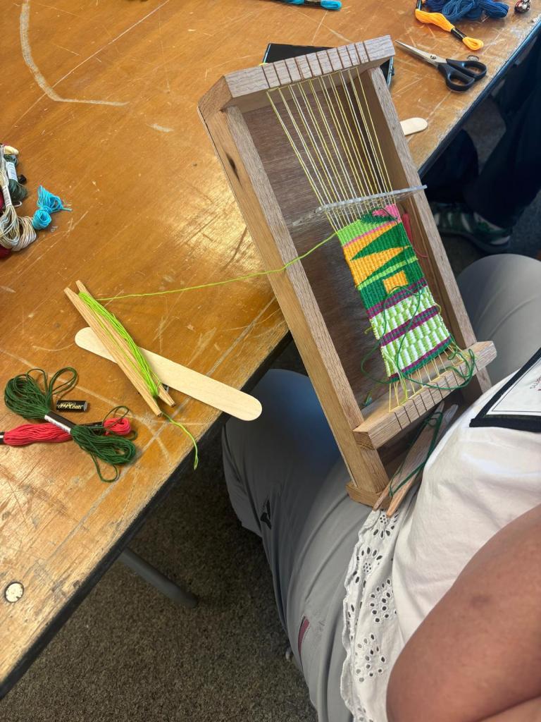 This event has been one of the highlights of the year for Kwasi. While Kwasi’s workshops are available for students and people of all ages, education levels and backgrounds, from time to time Kwasi may work with groups or organizations of weavers and people with specialized interests in art, weaving or fiber arts. As with Kwasi’s workshop at Art Students League in Denver in September 2024, these kinds of programs often allow Kwasi to encourage students to take on and explore some of the more complicated stitches and designs that are similar to the beloved Ashanti weaving patterns in his Ghanaian tradition. Students from MAFA took advantage of Kwasi’s weekend course and pushed themselves to create many extraordinarily beautiful and intricate Kente weaves.