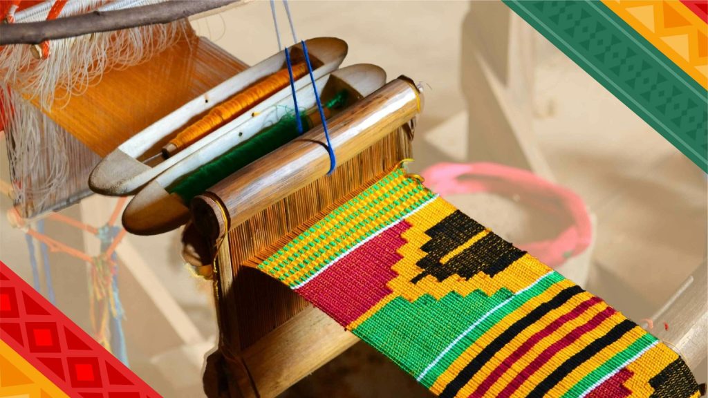 According to legend, Kente weaving originated from two hunters who were taught the craft by observing the spider ANANSI, weaving its web, and brought it back to their village. The Kings of the Ashanti kingdom adopted Kente as a royal cloth for special occasions, and thus, Kente has been associated with royalty, dignity and honor for many centuries in Ghana. In the 20th Century and the New Millennium, Kente has evolved through its contact with African Americans and the African Diaspora and represented the idea that the descendants of the Middle Passage of slavery should see themselves, in fact, as true Kings and Queens because of overcoming the long history of suffering and displacement and that Africanness has its own inherent beauty, dignity and being.