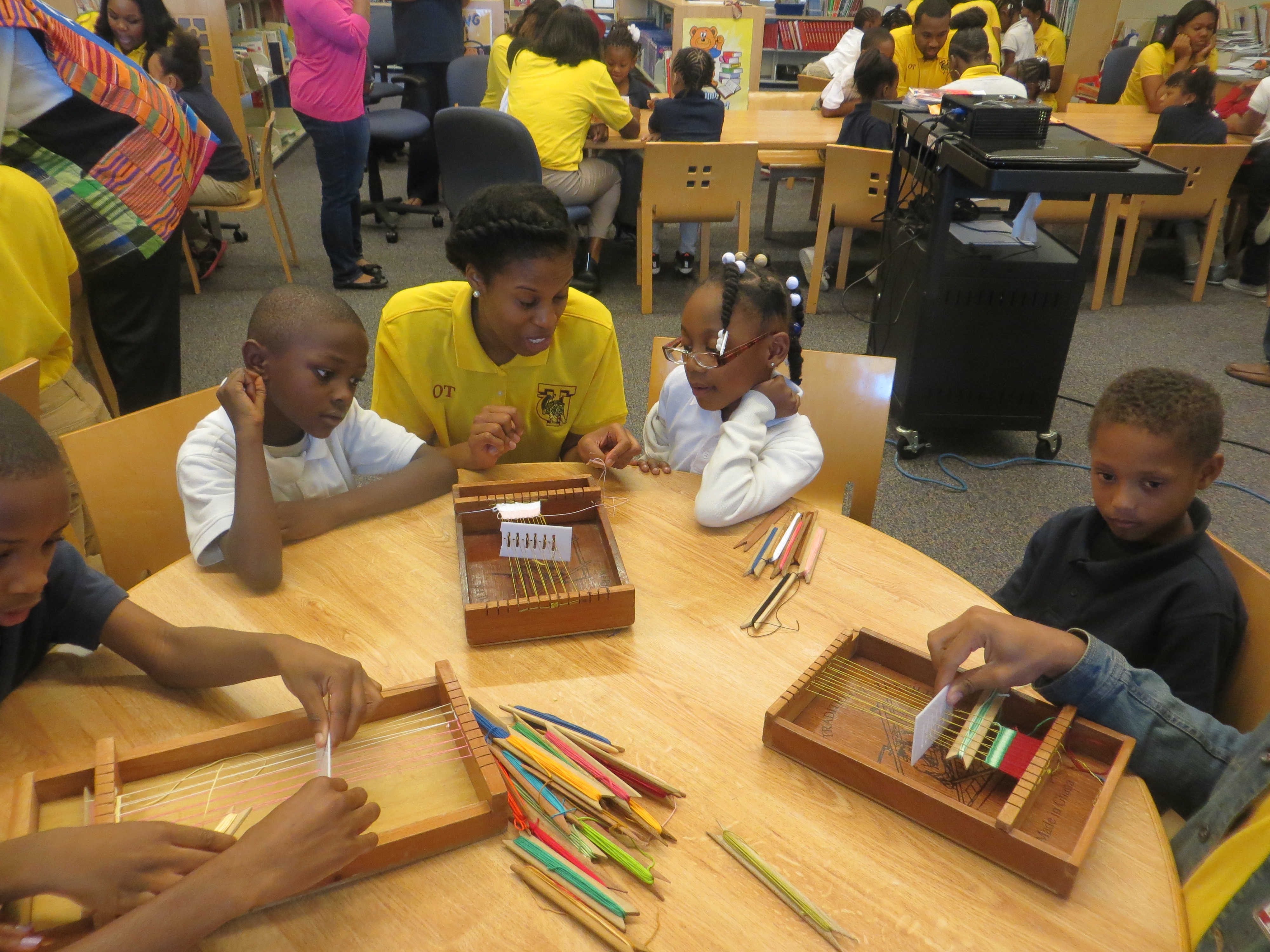Kwasi Asare’s workshops are unique and almost unlike any other kind of educational or cultural presentation. His workshops explore mathematics as Kente cloth weaving naturally involves careful visualizations, pattern recognition and calculations. But the tactile sensations and artfulness of weaving has a way of breaking down math anxiety by engaging students in the challenges of problem solving for their own designs. This can be especially rewarding for primary, middle and high school students who sometimes have a visceral fear of classroom mathematics.